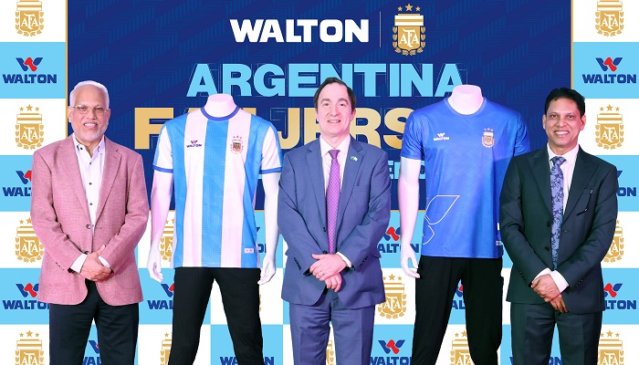 উল্লেখ্য, বিশ্বচ্যাম্পিয়ন আর্জেন্টিনা জাতীয় ফুটবল দলের অফিসিয়াল রিজিওনাল স্পন্সর ওয়ালটন। আর্জেন্টাইন ফুটবল অ্যাসোসিয়েশন (এএফএ) এর সঙ্গে চুক্তি স্বাক্ষরের মাধ্যমে আর্জেন্টিনা জাতীয় ফুটবল দলের সঙ্গে যুক্ত হয়েছে ওয়ালটন। এর মাধ্যমে আর্জেন্টিনা জাতীয় ফুটবল দলের সব ধরনের ব্র্যান্ডিং স্বত্ত্ব লাভ করেছ ওয়ালটন। ওয়ালটন পণ্যের নানান ধরনের ব্র্যান্ডিং কার্যক্রমে দেখা যাচ্ছে মেসি-মার্টিনেজদের, যা প্রতিষ্ঠানটির অন্যতম শীর্ষ গ্লোবাল ব্র্যান্ড হয়ে ওঠার ক্ষেত্রে ব্যাপক ভূমিকা রাখছে। এরই প্রেক্ষিতে আসন্ন ২০২৬ ফিফা ফুটবল বিশ্বকাপকে সামনে রেখে আর্জেন্টিনা ফুটবল দলের ফ্যান জার্সি উন্মোচন করলো প্রতিষ্ঠানটি। দেশজুড়ে ওয়ালটনের অগণিত ক্রেতা ও শুভাকাক্সিক্ষগণ আর্জেন্টিনার এই ফ্যান জার্সি পাবেন।